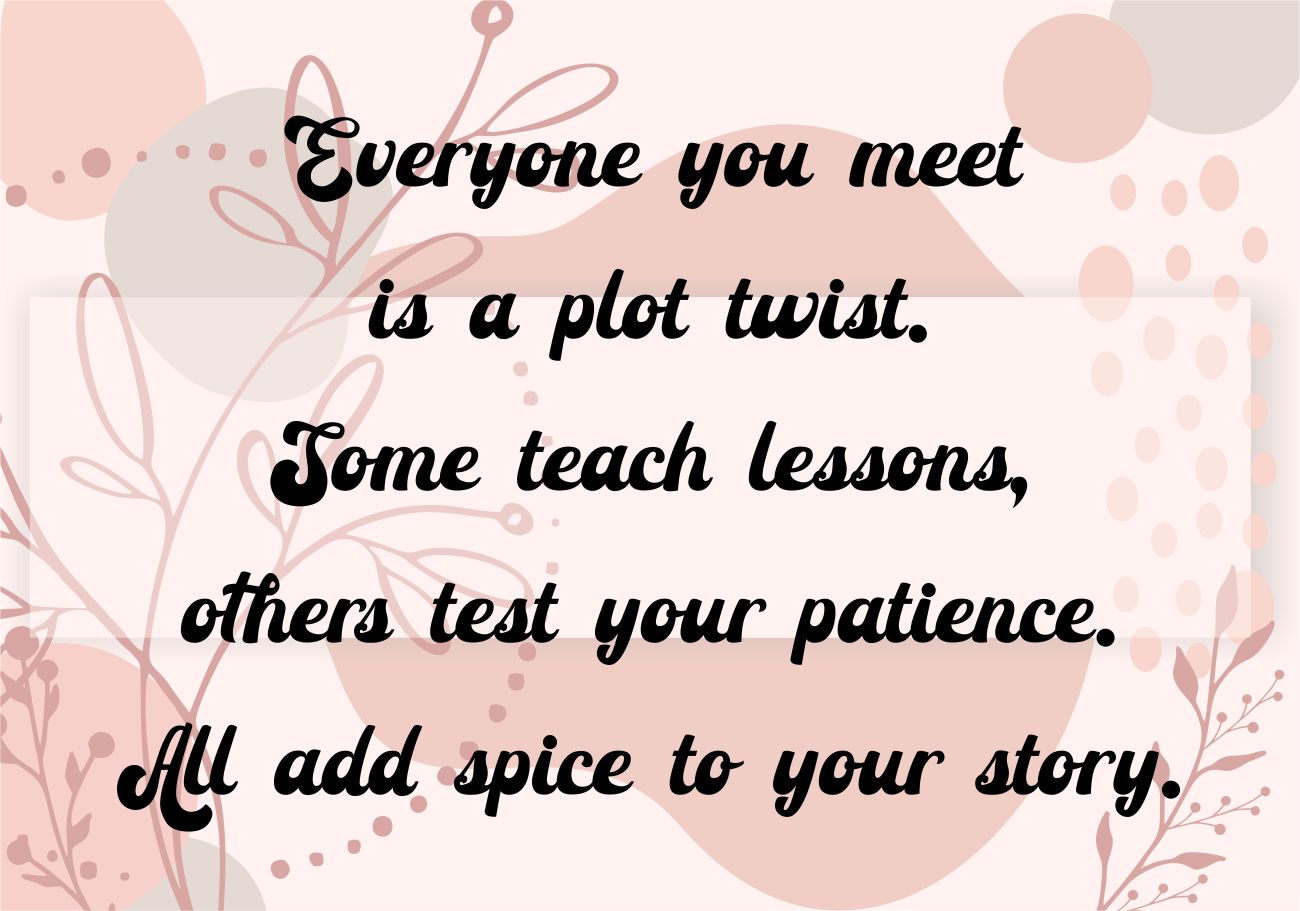 I read somewhere that every person you meet is meant to cross paths with you and every person plays a part in your life. Whether it is to teach you a valuable lesson, or to prepare you for the future, there is something in each one.