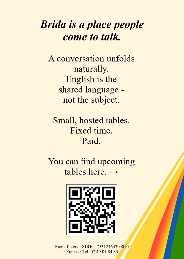 So Brida formed around a different centre of gravity. Conversation mattered more than competence. Presence came before outcomes. Adults were not positioned as learners, but as people with lives, histories, and voices that didn’t need improving before being heard.