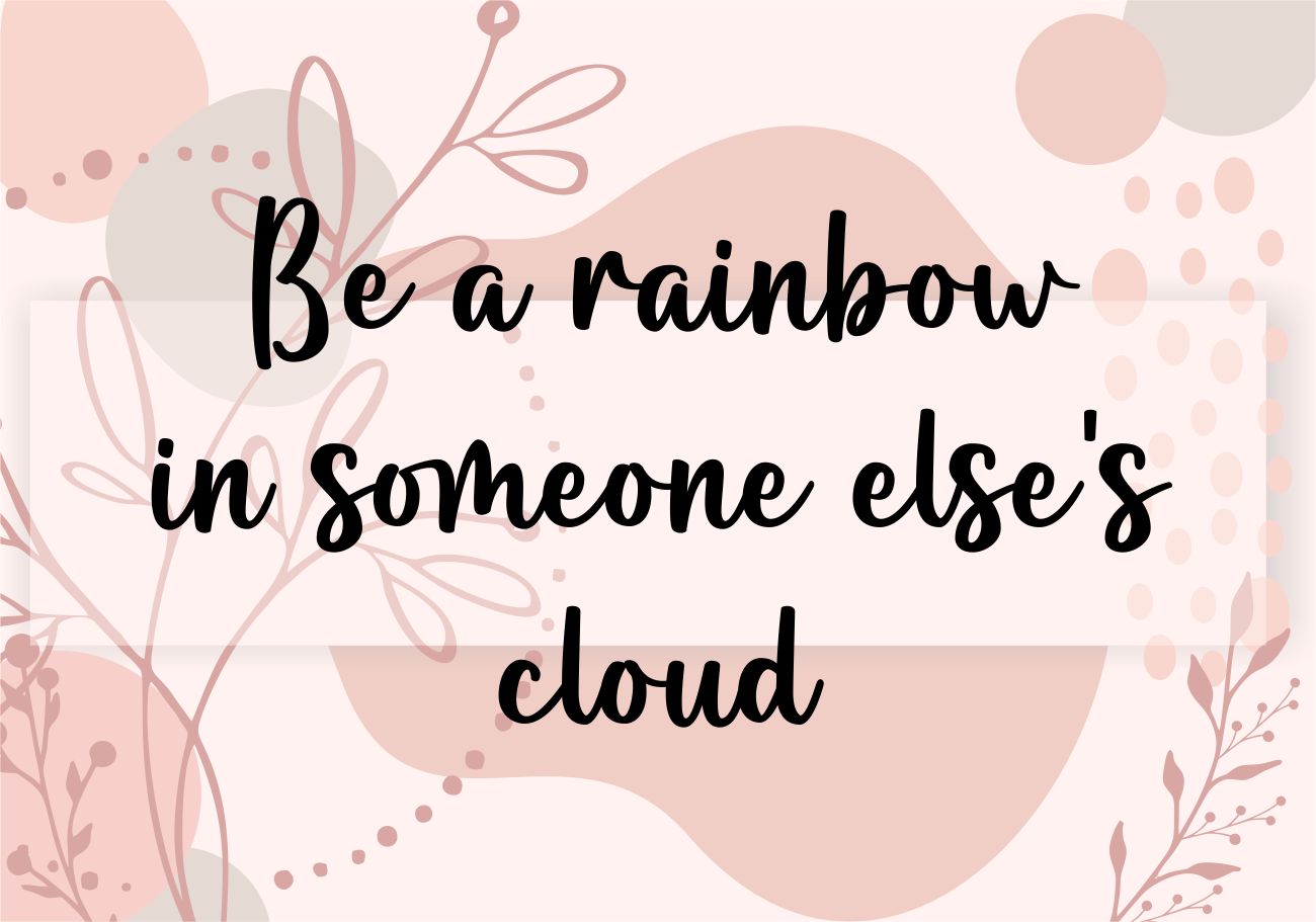 You become the rainbow in someone’s cloudy day. You bring colour and joy and laughter where this person might have felt “It is the end for me”.